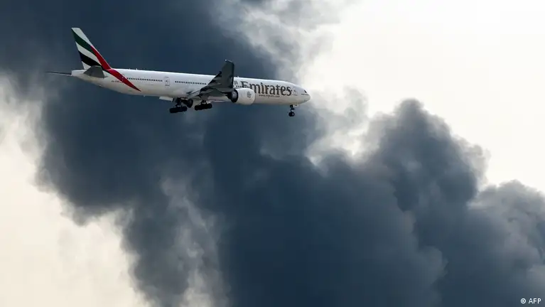 دخان يتصاعد إثر هجوم إيراني على مدينة دبي - 16 مارس 2026