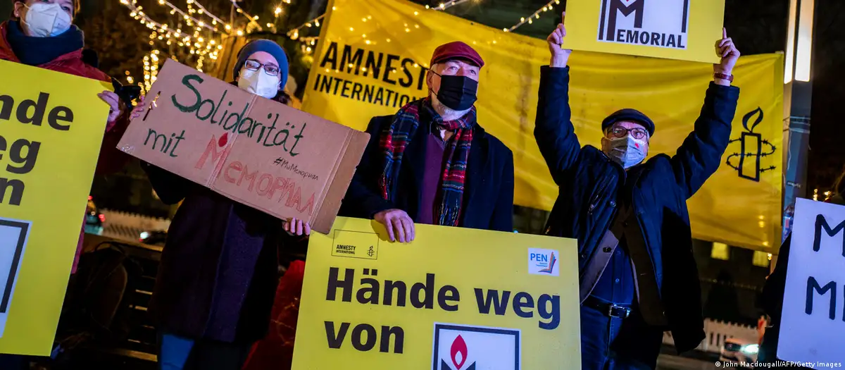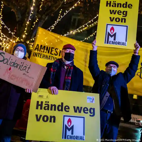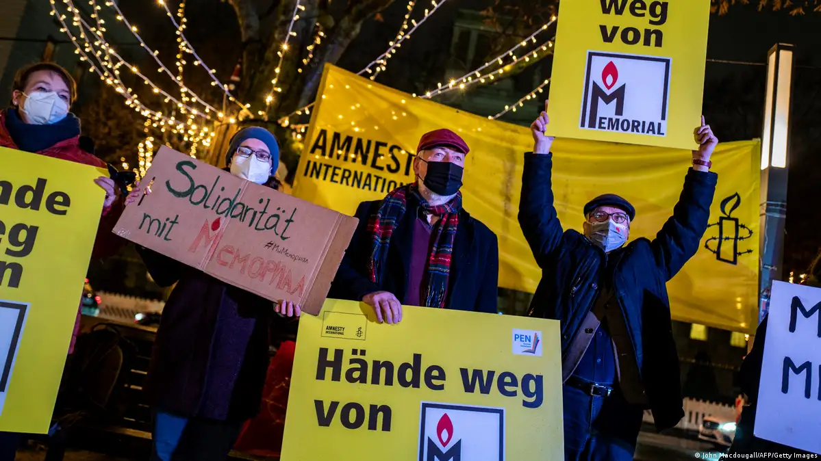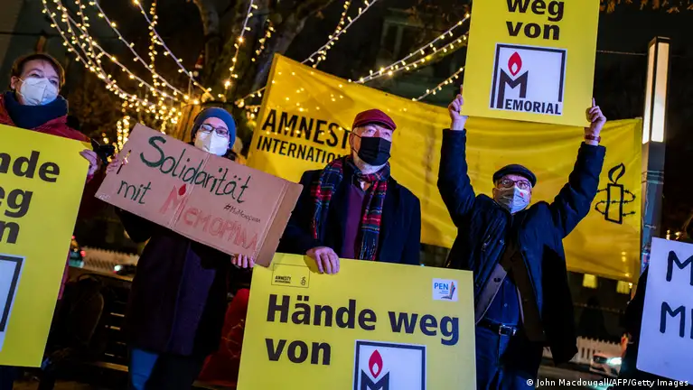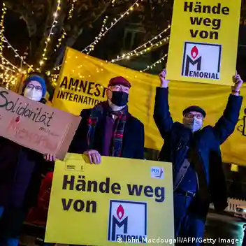 Seit Jahren ist Memorial im Visier russischer Behörden - international erfährt die Organisation Solidarität wie hier durch Proteste vor der russischen Botschaft in Berlin 2021Bild: John Macdougall/AFP/Getty Images