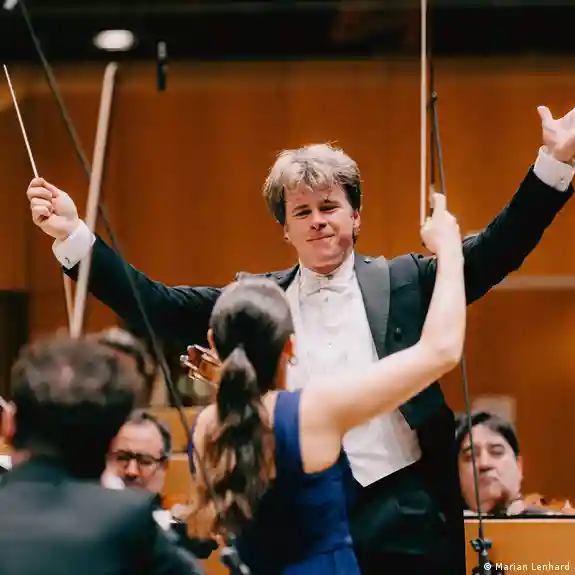 Auf dem Programm des ersten Konzerts stand damals die "Leonoren-Ouvertüre Nummer 3" von Ludwig van Beethoven, der das Werk in der Zeit der Befreiungskriege gegen Napoleons Besatzungsmacht geschrieben hatte. Acht Jahrzehnte später eröffnete auch der tschechische Maestro Jakub Hrůša am 18. März 2026 das Jubiläumsprogramm mit diesem Werk. Für Hrůša ist die Wahl programmatisch was die Botschaft seines Orchesters anbelangt, das er seit 14 Jahren leitet. "Ich glaube, die Harmonie ist das Stichwort für unseren Klang und unsere Arbeit. Auch im Kontakt mit dem Publikum, ob im Saal oder am anderen Ende der Welt bei einer Übertragung des Konzertes", sagt Hrůša im DW-Gespräch. "Gerade in stürmischen Zeiten stehen wir für Stabilität und Solidarität, das ist unsere Mission."