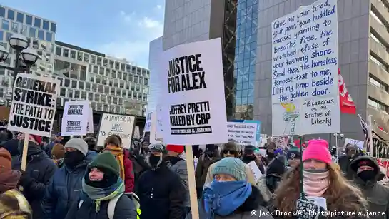 Tausende Menschen protestieren in Minneapolis nach den tödlichen Schüssen von Beamten auf einen US-Bürger. Auf konkurrierenden Pressekonferenzen gaben Bundes- und Staatsbeamte stark voneinander abweichende Darstellungen der umfassenden Einwanderungskontrollen, die derzeit in der ganzen Stadt durchgeführt werden. Der Gouverneur von Minnesota, Tim Walz, wiederholte seine Forderung an Präsident Donald Trump, die Bundesbeamten aus dem Bundesstaat abzuziehen.