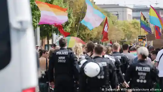 GesellschaftDeutschlandQueer und bedroht: CSD in Brandenburg unter Druck von rechtsTo view this video please enable JavaScript, and consider upgrading to a web browser that supports HTML5 videoGesellschaftDeutschlandChristine Bayer16.07.202516. Juli 2025Ein Großaufgebot der Polizei sichert den CSD-Marsch in Eberswalde. Angriffe bleiben aus, aber vor Ort macht die Partei AfD mit rechten Parolen Stimmung gegen die Veranstaltung.https://p.dw.com/p/4wpbwAnzeige