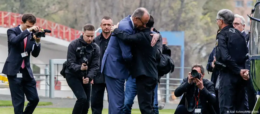 Friedrich Merz versprach, sich dafür einzusetzen, dass der zugesagte 90-Milliarden-Euro-Kredit der Europäischen Union für die Ukraine möglichst schnell freigegeben wird. Bislang hatte das EU-Mitglied Ungarn die Auszahlung verhindert. Nach dem Wechsel in Budapest hin zu einer EU-freundlichen Regierung sollte eine Auszahlung Mitte Mai möglich sein, hieß aus deutschen Delegationskreisen.