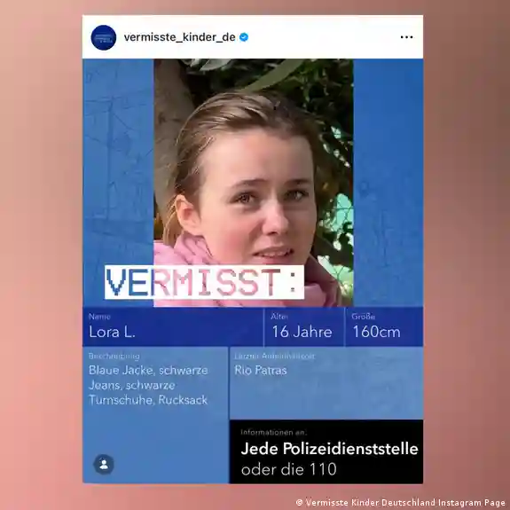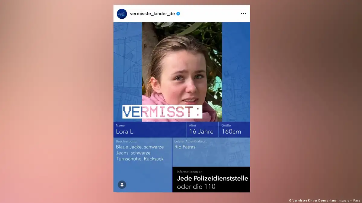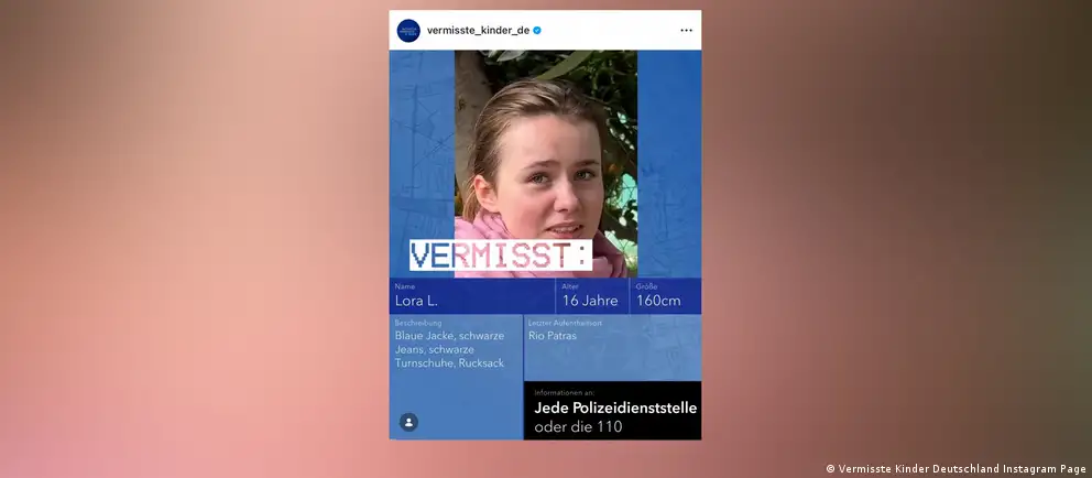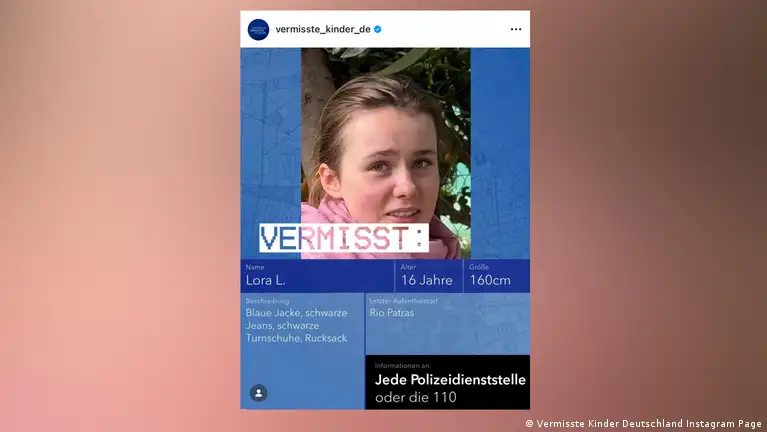 Η υπόθεση της Λόρας συνεχίζει να προκαλεί έντονη ανησυχία στην ελληνική κοινή γνώμηΕικόνα: Vermisste Kinder Deutschland Instagram Page