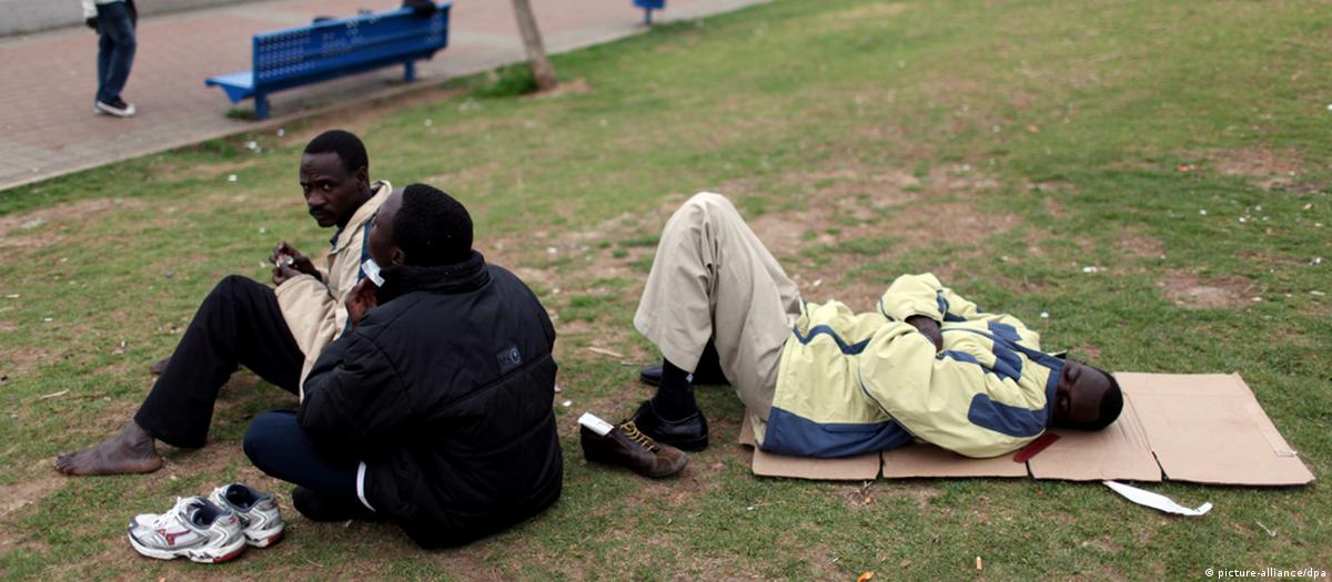 Many of them live near Tel Aviv's Central Bus Station at Levinsky Park. One man said he didn't understand why journalists came because it never really helped their situation. Another told me he is glad to talk to photographers and if they are kind, he doesn't mind helping them. Still another man complained he only ever had a room when he is able to find work, but most nights, he sleeps in the park. To him, Israel is a rich place where people could help, but no one ever does, he says, they don't even stop to talk to him.