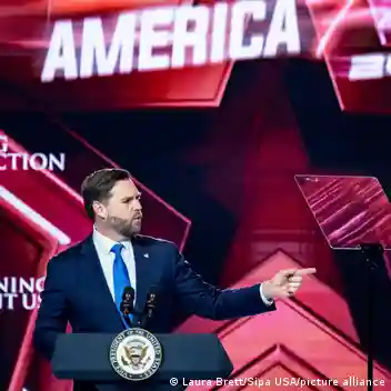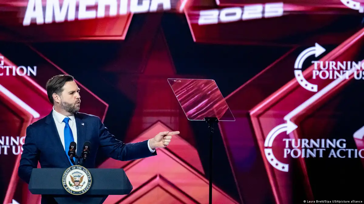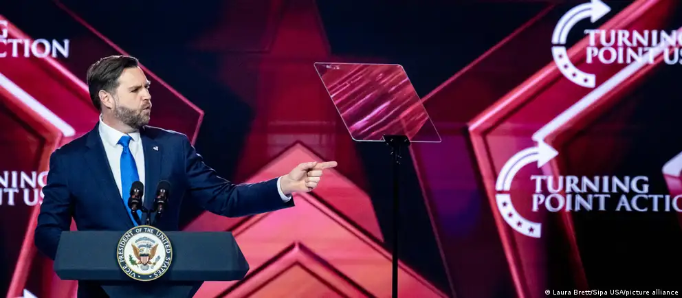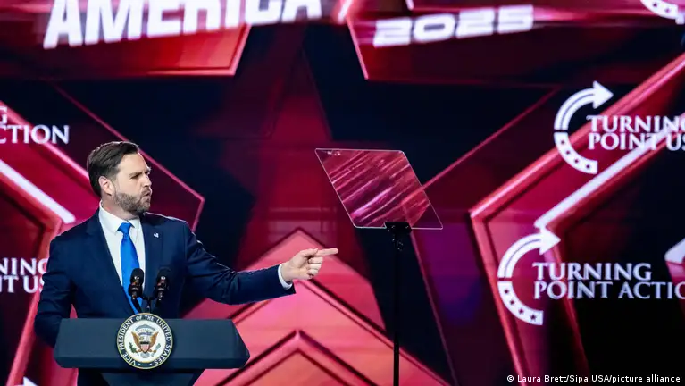 US Vice President JD Vance closed AmericaFest 2025 in December with a speech emphasizing the nation's Christian identityImage: Laura Brett/Sipa USA/picture alliance