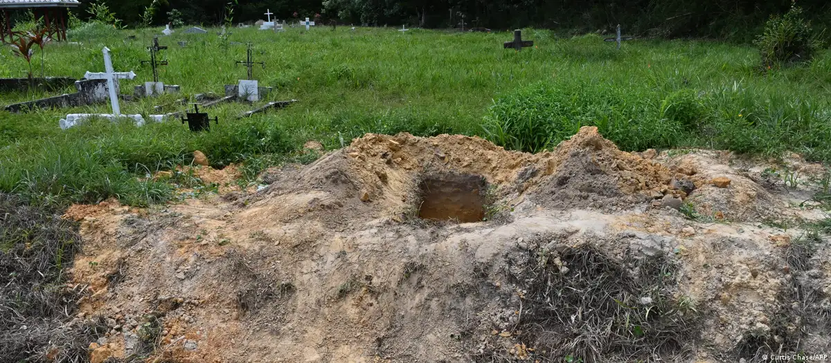 A view of an open grave at the cemetery of Cumuto, Trinidad and Tobago, taken on April 18, 2026.