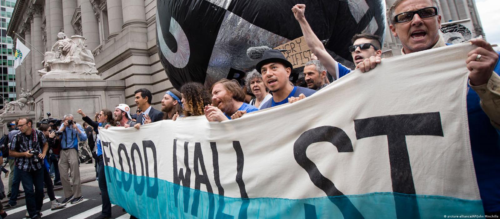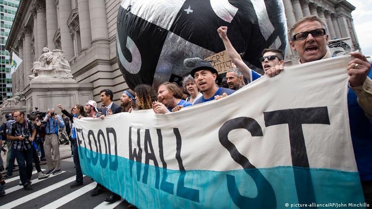 The Flood Wall Street group planned to march to the steps of the New York Stock Exchange for a sit-in Monday, according to Leah Hunt-Hendrix, a spokeswoman for the protesters. The group has roots in the Occupy Wall Street movement, which started in a downtown Manhattan park in 2011. It protested common business practices, saying that they serve the wealthiest 1 percent and leave behind the remaining 99 percent of the world's population.