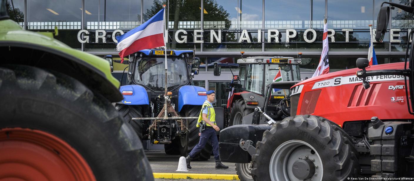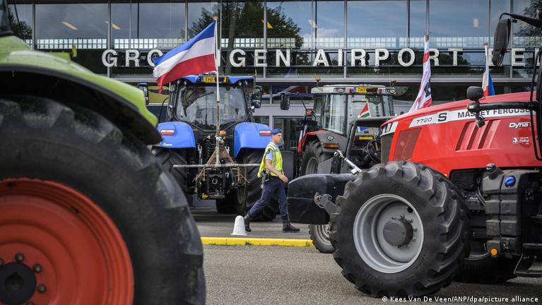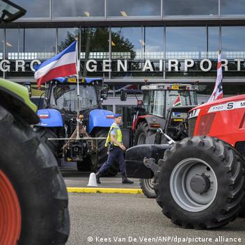 Hours later, on Wednesday morning, protesting farmers were gathering outside the Groningen airport in the north of the country.