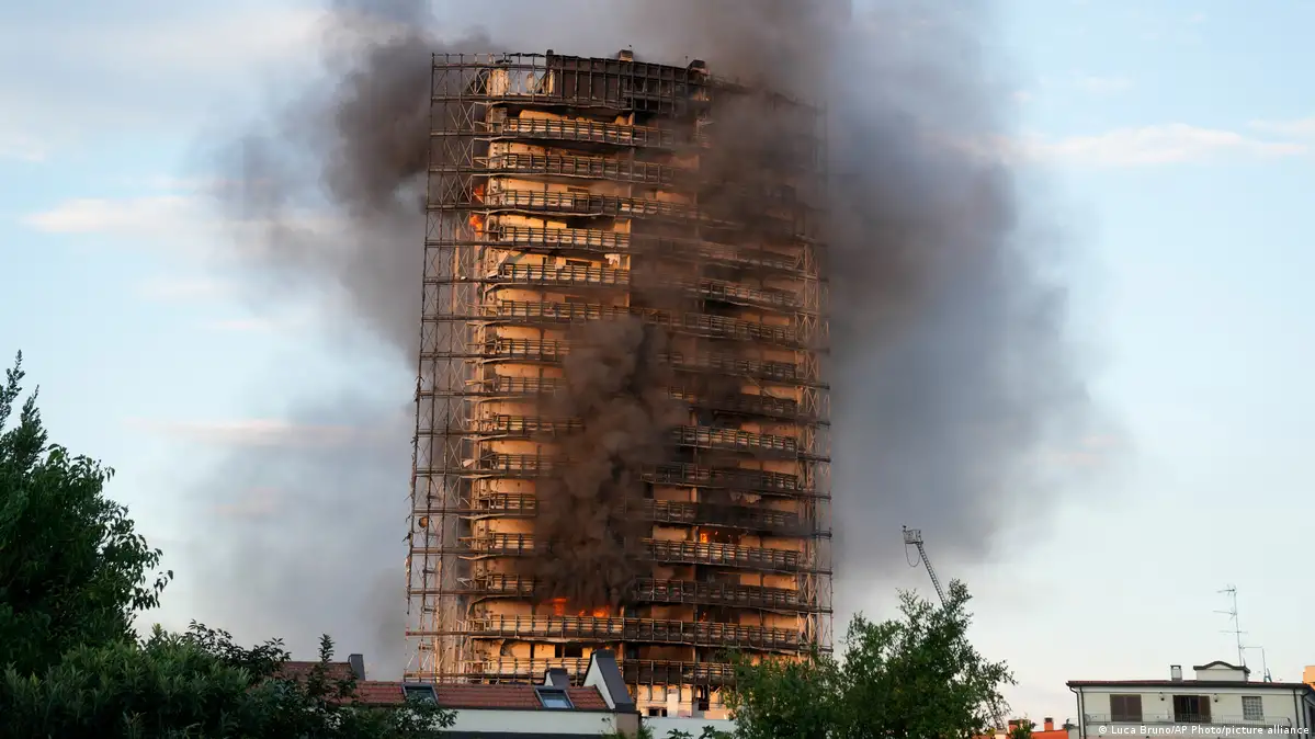 "The cause of the fires still needs to be determined, but it seems that the rapid spread of the flames was due to the thermal covering of the building," said Carlo Sibia, an Interior Ministry official in Rome.