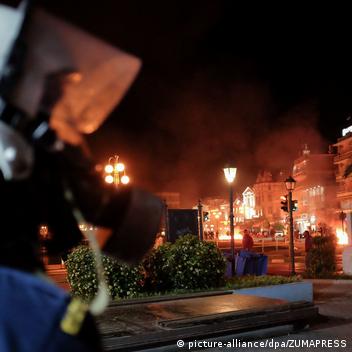A dozen people were injured and 100 arrested in skirmishes after members of a far-right group attacked Afghan migrants staging a sit-in protest in Lesbos' main town of Mytilene overnight, police said on Monday.
