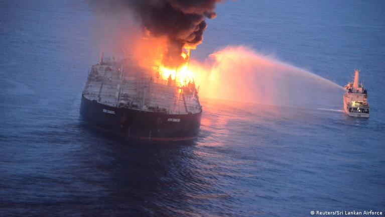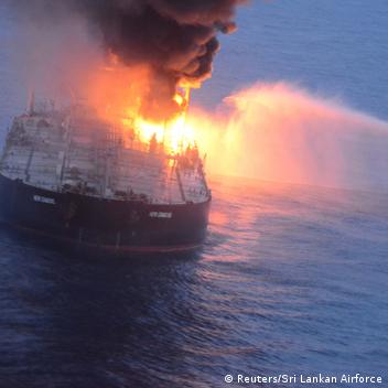 Sri Lanka and neighboring India have launched a major operation to battle the blaze and prevent an environmental disaster in the Indian Ocean.