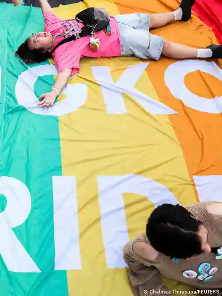 Bangkok was awash with rainbow colors on Sunday as thousands of people wearing eye-catching outfits took to the streets for Thailand's annual Pride parade. Some participants danced atop floats, while others marched for hours through the city center, proudly waving rainbow flags.