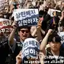 About 40,000 Samsung Electronics workers rallied on Thursday, demanding a larger share of the company's booming profits.