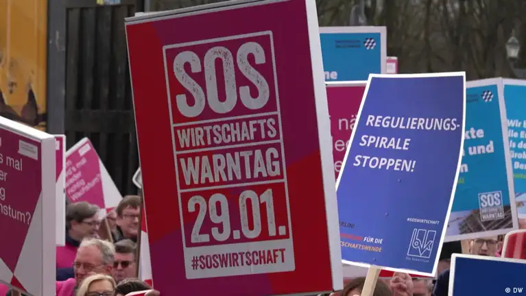 BusinessGermanySounding the alarm about Germany's business environmentTo view this video please enable JavaScript, and consider upgrading to a web browser that supports HTML5 videoBusinessGermanyFabian Dittmann02/19/2025February 19, 2025German businesses are sounding the alarm ahead of the federal election, warning of further stagnation. They’re calling for better conditions and less bureaucracy to help revive the economy.https://p.dw.com/p/4qanlAdvertisement
