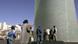 Sunshine hitting the column of 15,000 glass bricks focuses light into an empty, blue chamber below a busy highway, which