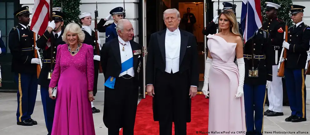 In the evening, King Charles III and Queen Camilla attended a state dinner with the Trumps at the White House