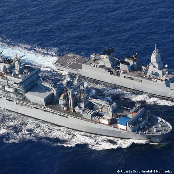The two vessels, the combat support ship Berlin and the frigate Hessen, were dispatched from the Horn of Africa region and passed through the Suez Canal and into the Mediterranean Sea on Friday.