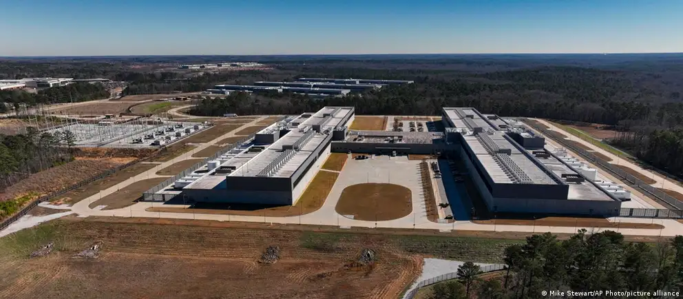Critics say data centers could strain local power systems, raise household electricity bills, and consume large amounts of land and water [FILE PHOTO: January 13, 2026]Image: Mike Stewart/AP Photo/picture alliance