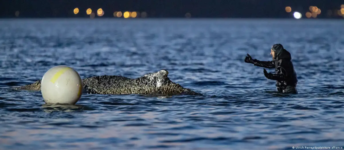 On Friday morning, German media reported that the whale had been spotted swimming out in the Bay of Lübeck, to the south of Denmark.