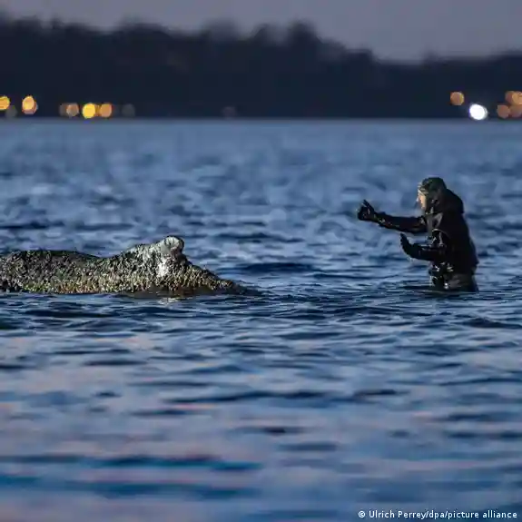 How did the whale free itself from the German beach?