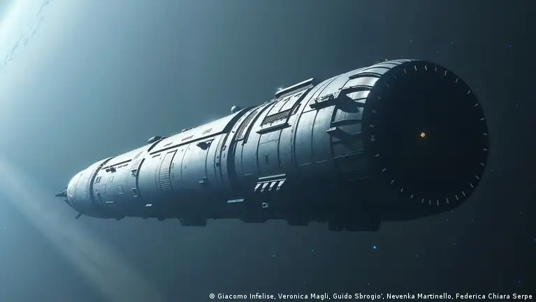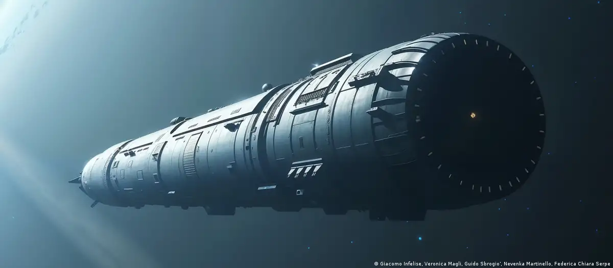 La estructura es verdaderamente colosal: 58.000 metros de longitud (equivalente a más de 550 campos de fútbol) y una masa de 2.400 millones de toneladas métricas (equivalente a 369 Grandes Pirámides de Giza), según detallan los documentos del proyecto. Su diseño cilíndrico no es casual: el extremo delantero más estrecho está pensado para minimizar los riesgos de impactos con micrometeoritos y reducir las tensiones estructurales durante las fases de aceleración y desaceleración.
