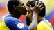 Agustin Delgado (izq.) saluda a Iván Kaviedes, luego que este último conviertiera el tercer gol para Ecuador.Imagen: AP