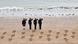 Veteranos de guerra saludan mientras sube la marea en una obra de arte de arena que representa a soldados, realizada por miembros de Royal British Legion Industries (RBLI), como parte de una instalación erigida en Stone Bay, antes del 80 aniversario del desembarco del Día D, en Inglaterra.