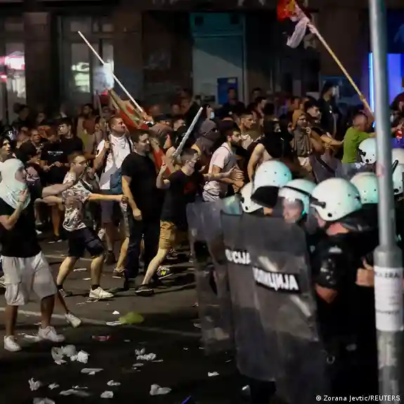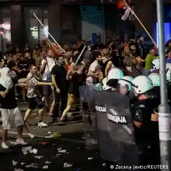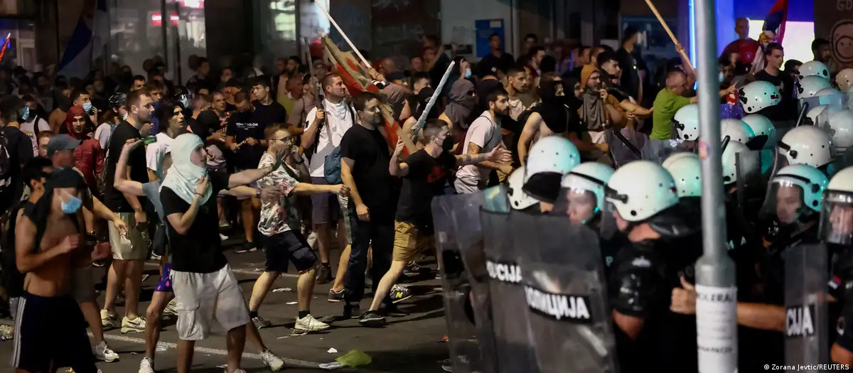 La policía anunció la detención de 77 personas, mientras que 48 agentes resultaron heridos, informaron este domingo las autoridades serbias.