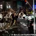 Manifestantes y policías chocan durante una protesta en Belgrado.Imagen: Zorana Jevtic/REUTERS