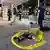 Expertos forenses de la policía establecieron un cordón de seguridad frente a la librería Eslite Nanxi, para recoger pruebas tras el ataque de un sospechoso contra varias personas en Taipei el viernes (19.12.2025)Imagen: Chang Hao-An/CNA Photo/AFP