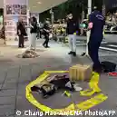 Expertos forenses de la policía recogen pruebas tras el ataque de un sospechoso contra varias personas en Taipei el viernes (19.12.2025)