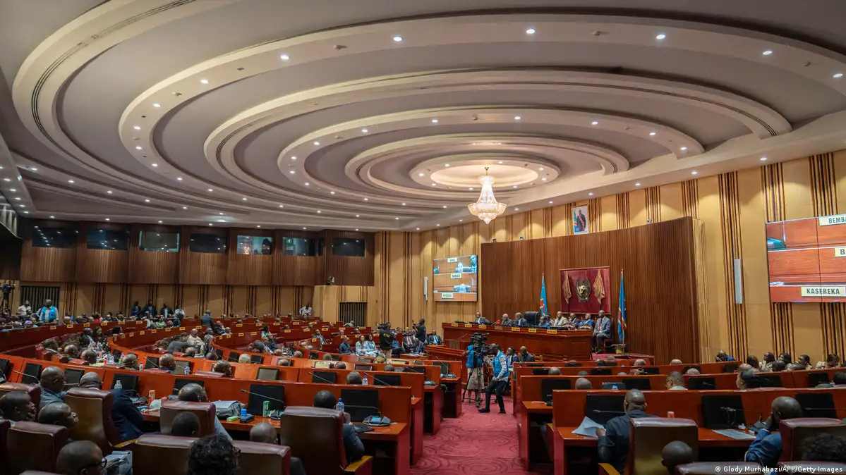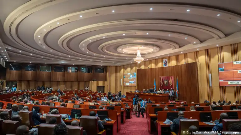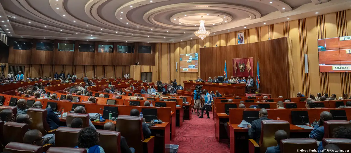 Des sénateurs de la RDC au cours d'une séance plénière pour voter la levée de l'immunité de l'ancien président Joseph Kabila en mai 2025Image : Glody Murhabazi/AFP/Getty Images