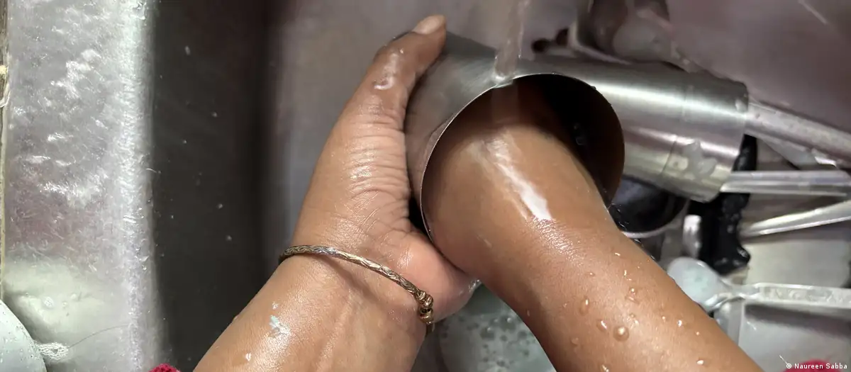 बर्तन धोती करती एक घरेलू सहायिका