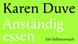 Kedua buku mereka bersampul hijau. Sampul buku Karen Duve, yang berjudul „Anständig Essen“ atau „makan secara etis“ dihiasi seekor kelinci gemuk yang duduk manis di atas piring. Sedangkan buku Jonathan Safran Foer berjudul „Eating animals“ atau „memakan binatang“ lebih simpel sampulnya. Dengan huruf-huruf jingga di tengah lingkaran putih sebuah piring.