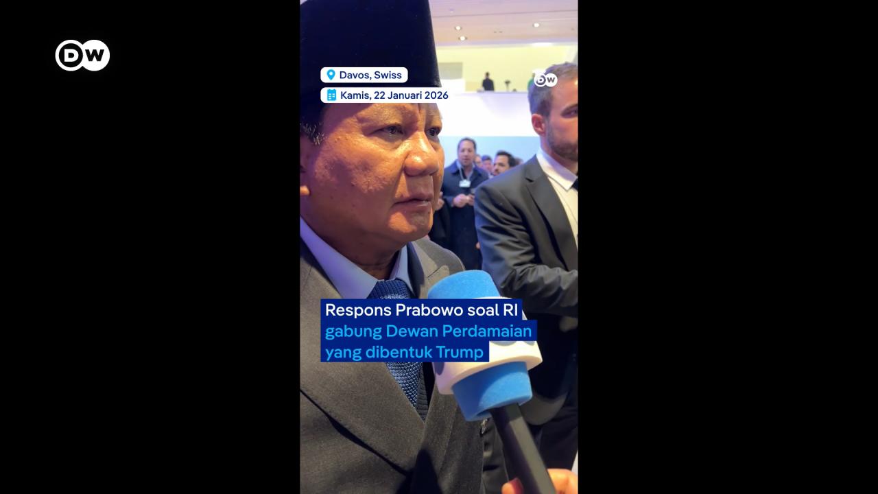 Presiden Prabowo menilai pembentukan Board of Peace oleh Donald Trump sebagai langkah yang bersejarah dan menyatakan Indonesia siap mengambil peran apa pun yang diminta. Ia menegaskan bahwa dunia harus memberi kesempatan bagi perdamaian, menyebut inisiatif ini sebagai peluang terbaik dalam bertahun-tahun.