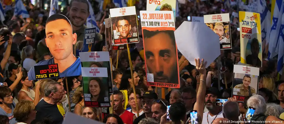 Десетици илјади луѓе демонстрираа и штрајкуваа низ целата земја во неделата барајќи крај на војната во Појасот Газа и ослободување на заложниците што се наоѓаат во рацете на Хамас во Газа. Демонстрантите блокираа неколку главни патишта, додека многу продавници во Ерусалим и Тел Авив останаа затворени. Израелскиот премиер Бенјамин Нетанјаху ги обвини дека со своите протести ја зајакнуваат радикално исламистичката палестинска организација Хамас.