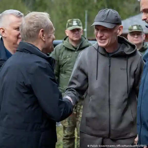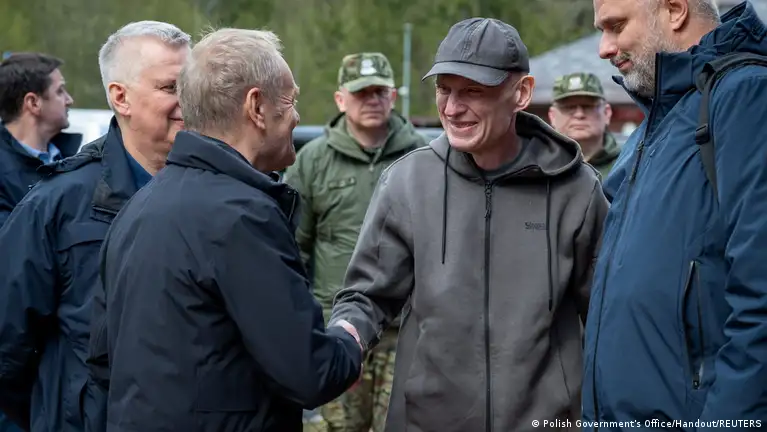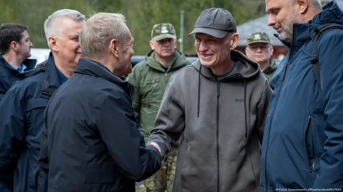 Opublikowane zdjęcia, te same, co zamieszczone na platformie X przez premiera Donalda Tuska, pokazują wychudzonego Poczobuta witanego przez szefa polskiego rządu.