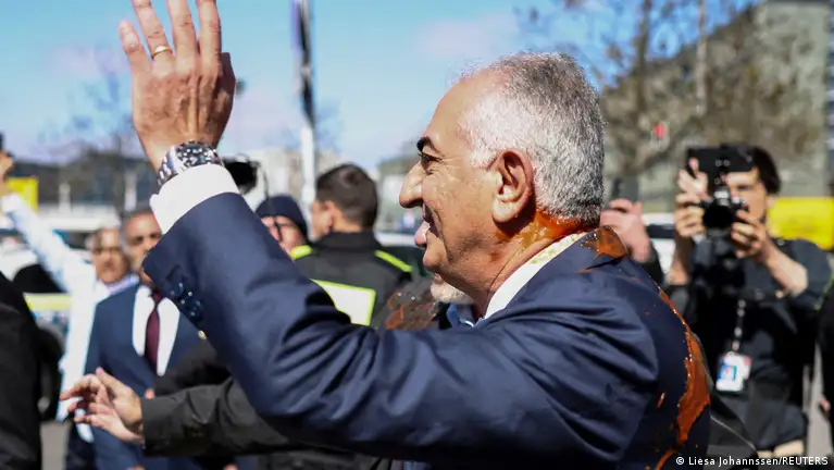 Syn byłego szacha Iranu Mohammad Reza Pahlawi ostał oblany czerwonym płynem w trakcie swojej wizyty w Berlinie w czwartek (23.04.2026). Sprawca został powalony na ziemię i zatrzymany przez policję relacjonuje agencja DPA. Jak poinformował rzecznik policji, mężczyzna był przesłuchiwany m.in. w sprawie jego motywu. Był on jednym z uczestników demonstracji przeciwko wizycie Pahlawiego.