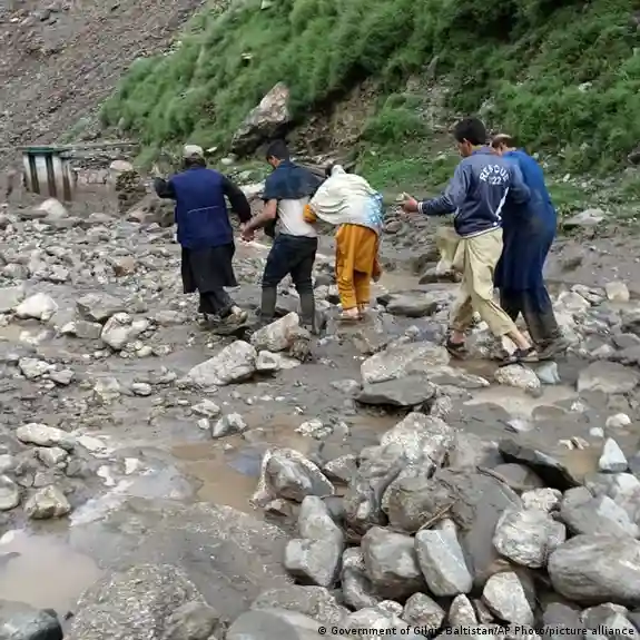 د کارپوهانو په حواله د يخي د جهيلونو سېلابونه هغه وخت رامنځته کيږي چې کله چې اوبه د کنګل د ماتېدو يا زيانمېدو او يا د ډبرو د بندونو د ماتېدو په نتيجه کې خوشي شي.انځور: Akhtar Soomro/REUTERS