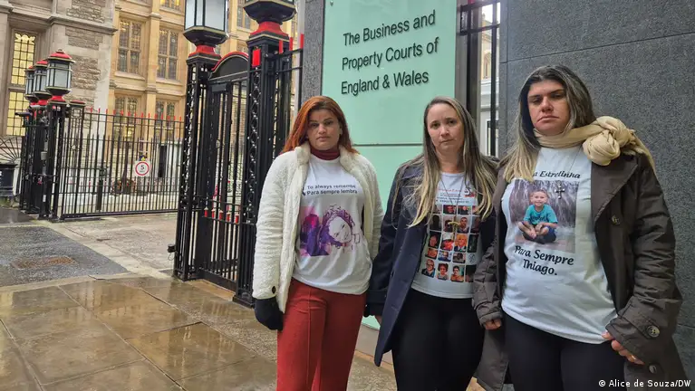 Apesar de estar em Londres, Santos – assim como outras duas vítimas com quem a DW conversou – não pôde entrar na corte para acompanhar a última sessão, por estar vestindo uma camisa em referência ao ocorrido. Nenhum sinal de protesto é permitido dentro da corte. Do lado de fora, ela e outras duas mulheres, mães de crianças que morreram na tragédia, carregavam uma faixa e exibiam o cansaço de uma maratona.