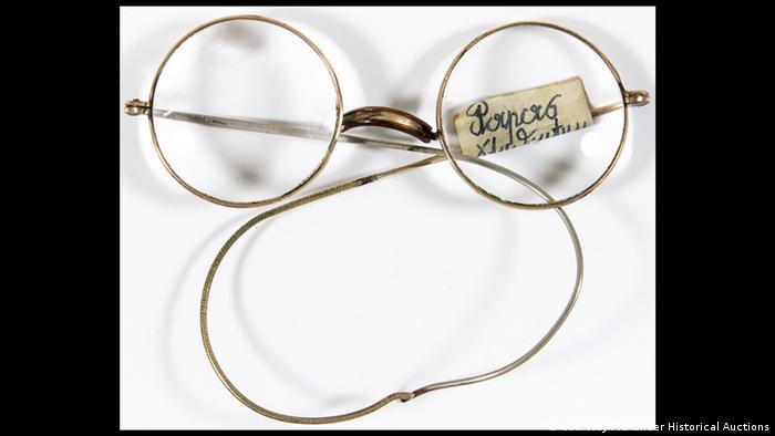Эти очки принадлежали рейхсфюреру СС Генриху Гиммлеру. На дужке оправы бумажная записка, на которой детской рукой написано "папины старые очки". Надпись была сделана старшей дочерью Гиммлера Гудрун. Предполагается, что они уйдут с молотка за 6.000-8.000 долларов США.