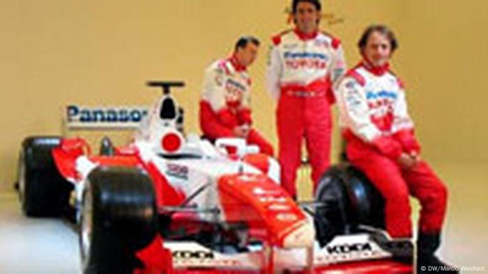 Презентация модели TF104 в Марсдорфе. На фотографии – пилот Оливер Панис из Франции, тест-пилоты Риккардо Зонта из Бразилии и Кристиано да Матта.