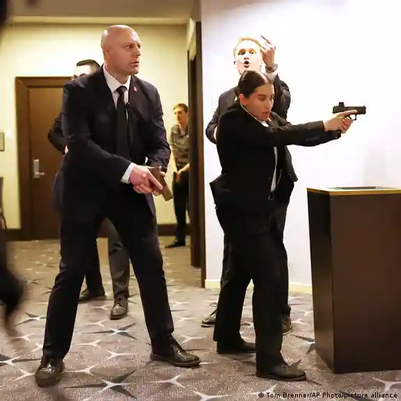 Среди присутствовавших на мероприятии, помимо Трампа, были первая леди Мелания Трамп, вице‑президент США Джей Ди Вэнс, министр обороны Пит Хегсет и госсекретарь США Марко Рубио. Они, а позднее и приглашенные на мероприятие журналисты, были эвакуированы, а меры безопасности в гостинице усилены.