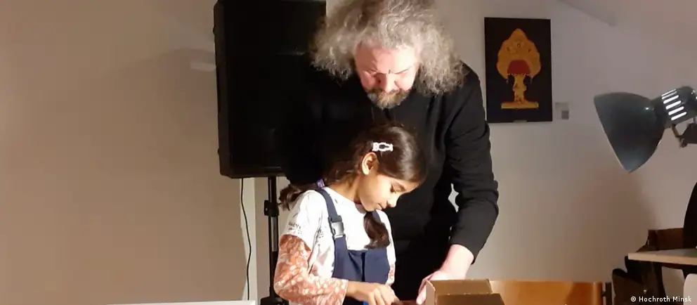 Берлинский коворкинг MiCT - проект для журналистов и деятелей искусства, вынужденных бежать из своих стран, - бесплатно предоставил свое помещение издательству. А с начала 2024 года там стали проводиться и встречи с читателями, куда заходят и авторы - если они оказываются в столице ФРГ, как, например, Андрей Хаданович, или живут здесь, как Света Бень. По возникшей в сети hochroth традиции, такие встречи включают и совместный выпуск книг, в котором могут поучаствовать все желающие: резать бумагу, клеить обложку, ставить печать с номером на каждый экземпляр. Так продолжает жить свободное слово Беларуси - в Берлине.