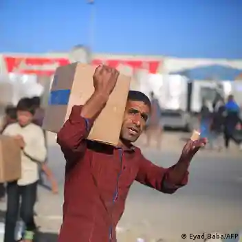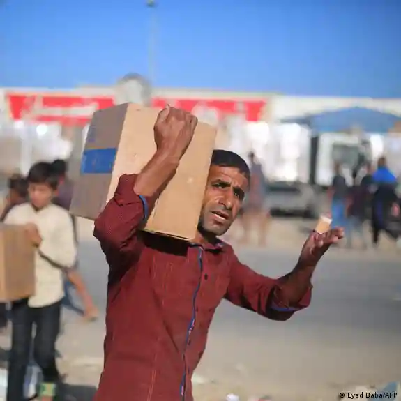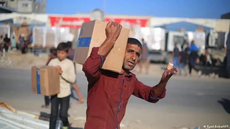 Maeneo ya Palestina Nuseirat 2025 | Wapalestina wakibeba chakula cha msaada