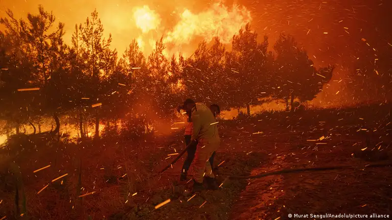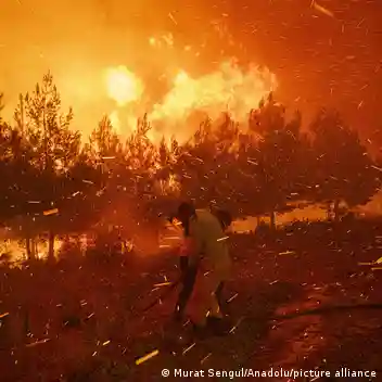 Diğer Akdeniz ülkeleri gibi Türkiye'de de yangınların yıkıcılığı giderek artıyor. Fotoğrafta, 17 Ağustos'ta Çanakkale'de yürütülen yangın söndürme çalışmaları görülüyor.Fotoğraf: Murat Sengul/Anadolu/picture alliance