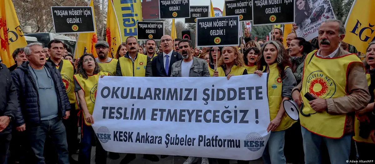 Aralarında Eğitim-Sen ve Eğitim-İş'in de bulunduğu eğitim sendikalarının, okullardaki saldırıların önlenmesi ve gerekli tedbirlerin alınması için MEB önünde düzenledikleri "yaşam nöbeti" devam ediyor.