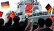 德国华人举旗欢迎"深圳号“驱逐舰入港图像来源: AP