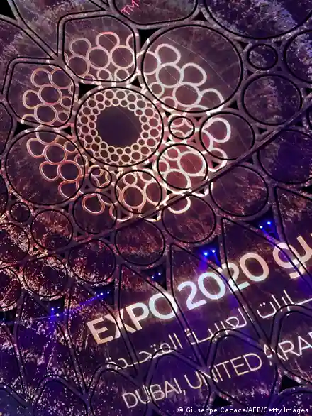因受到疫情影响,迪拜世博会从去年延期到今年,名称仍是Expo 2020。开幕仪式上有色彩绚丽的激光秀,有意大利男高音波切利、钢琴家郎朗和阿拉伯世界音乐家的献艺。