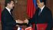 5月23日,刚上台的梅德维杰夫即赴北京与胡锦涛握手图像来源: AP